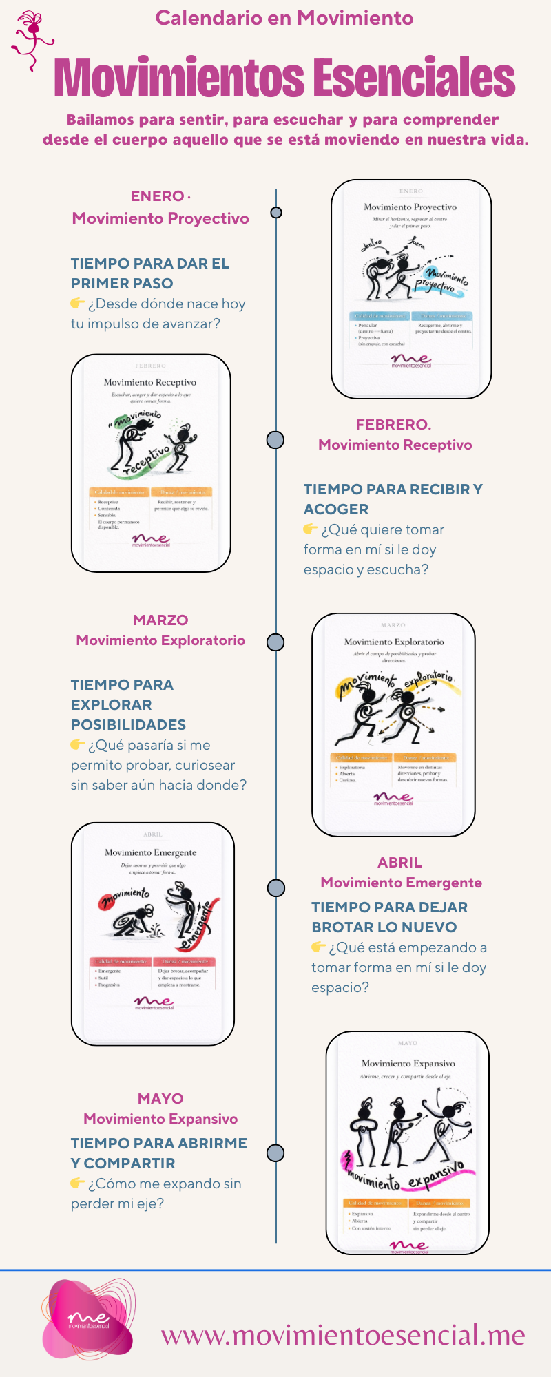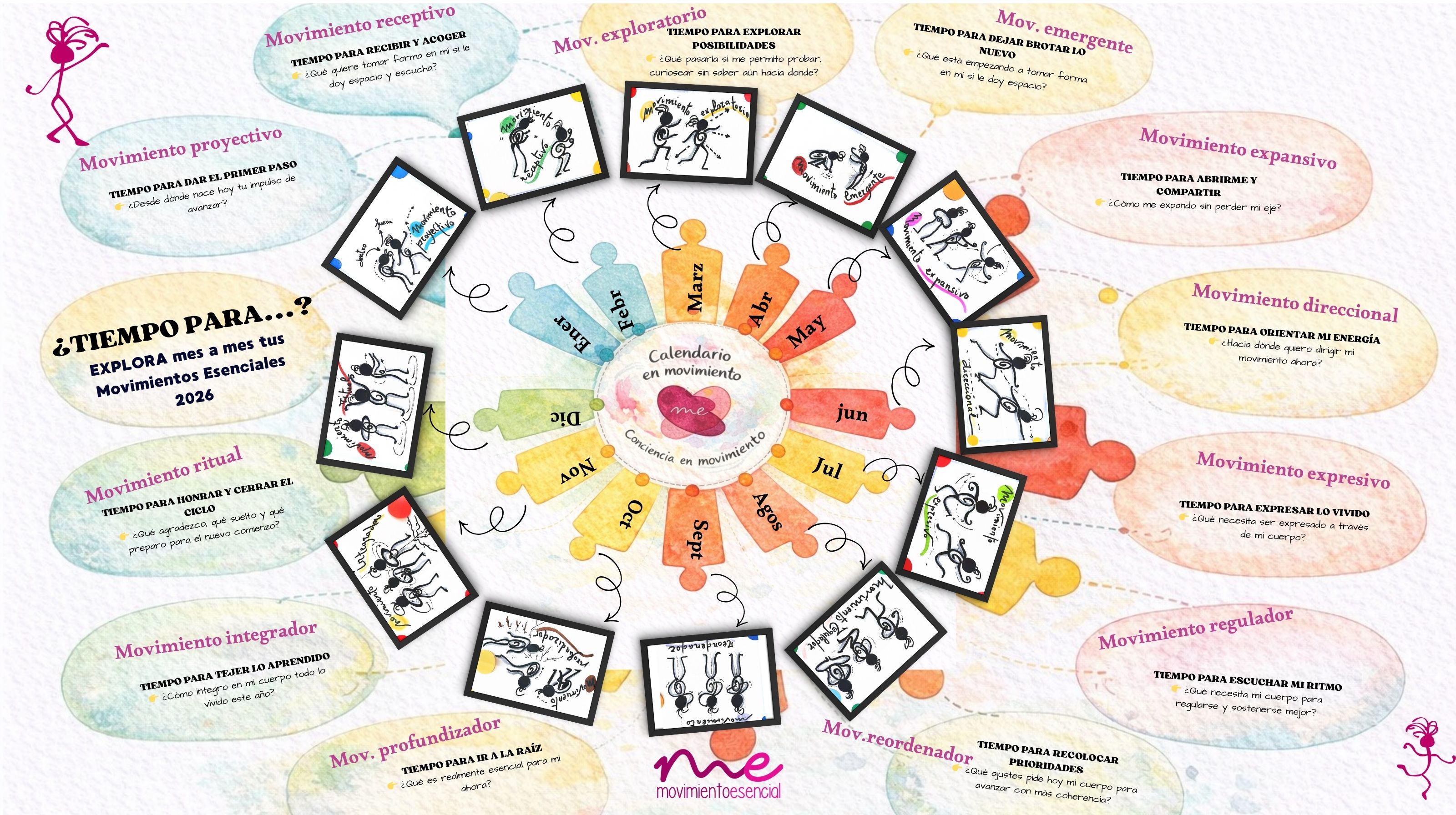 Si te apetece profundizar, a lo largo del 2026 iremos desarrollando mes a mes cada Movimiento Esencial del 2026: su sentido, su práctica, su danza y sus posibles aplicaciones en la vida cotidiana, en los vínculos y en lo profesional.